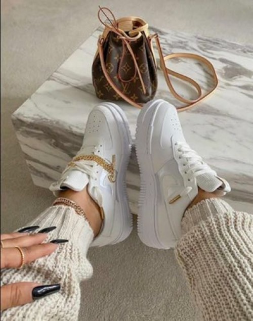 WMNS Air Force 1 AF1 Pixel White Gold Chain